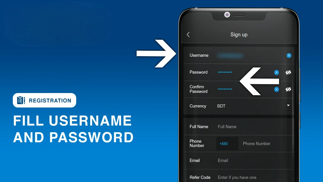 3. Establish a username and devise a password ranging from 6 to 20 characters, confirming it by re-entering.