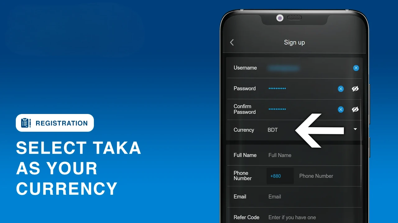 4. Designate Philippine Pesos as the account currency and include a referral code should one be at hand.