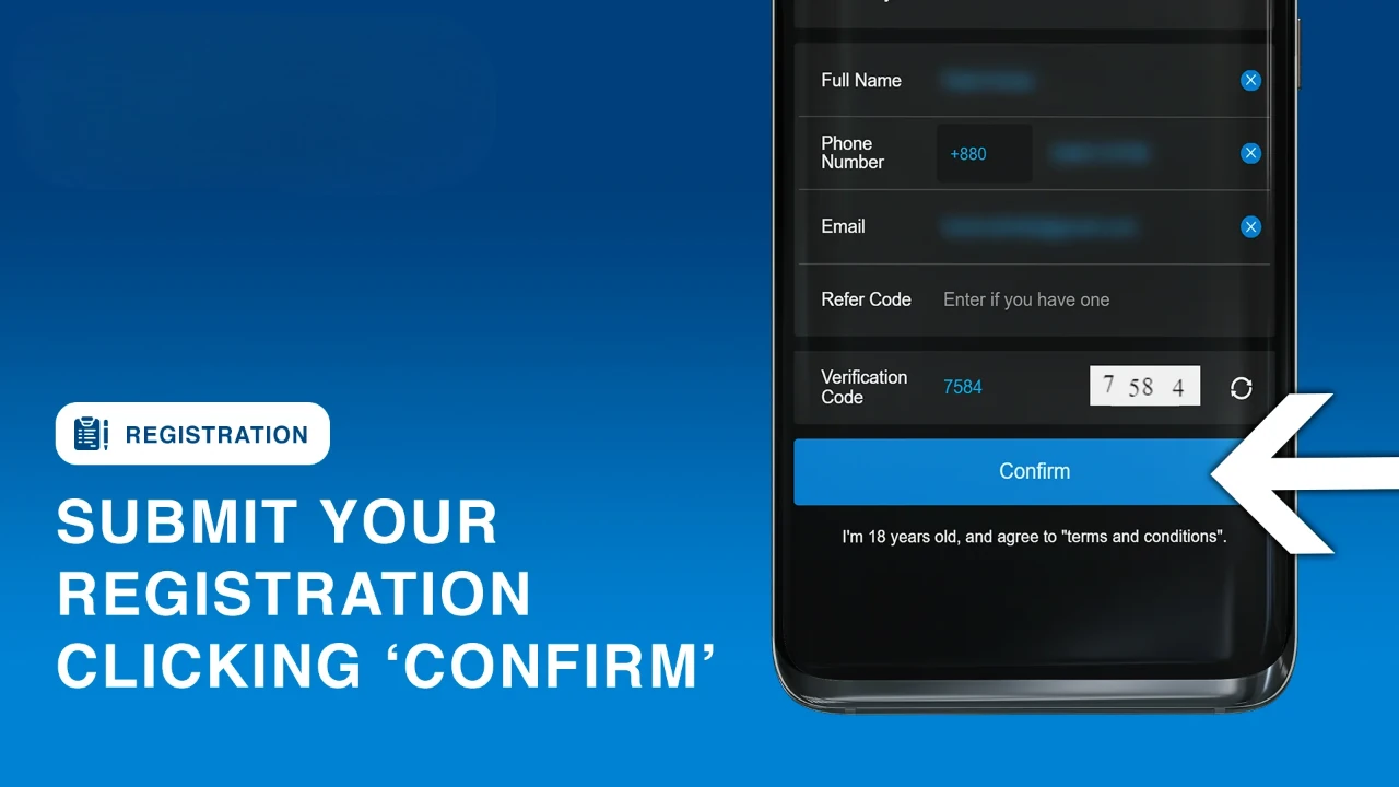 5. Advance by clicking the arrow, then supply your complete name, telephone number, and email address. Input the verification code to demonstrate human interaction.